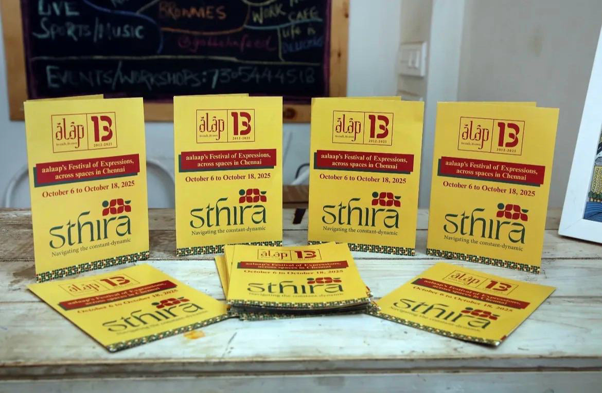 We were the design and branding collaborators for Sthira, Aalaap's tribute to friends and artistes who have shaped, challenged, empowered, and inspired its 13-year journey in the arts. What unfolded was a 13-day-long festival of performances and conversations over 15 events across several spaces in the city of Chennai.