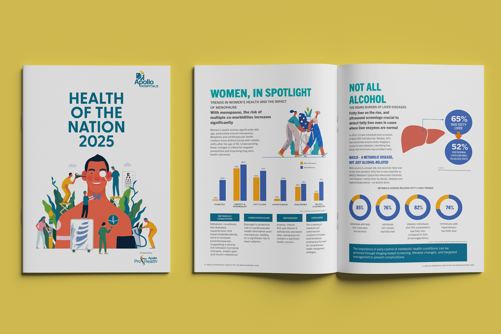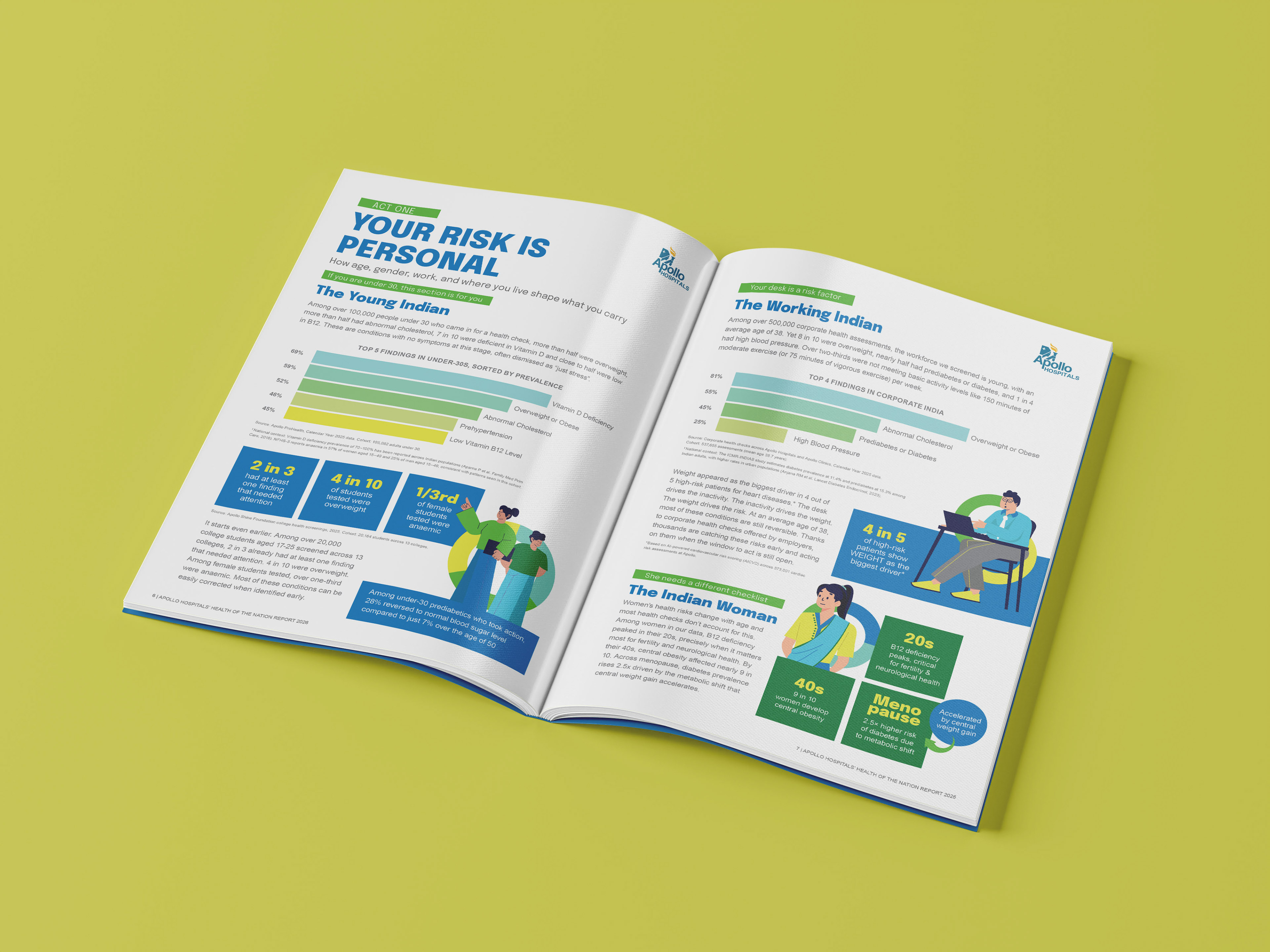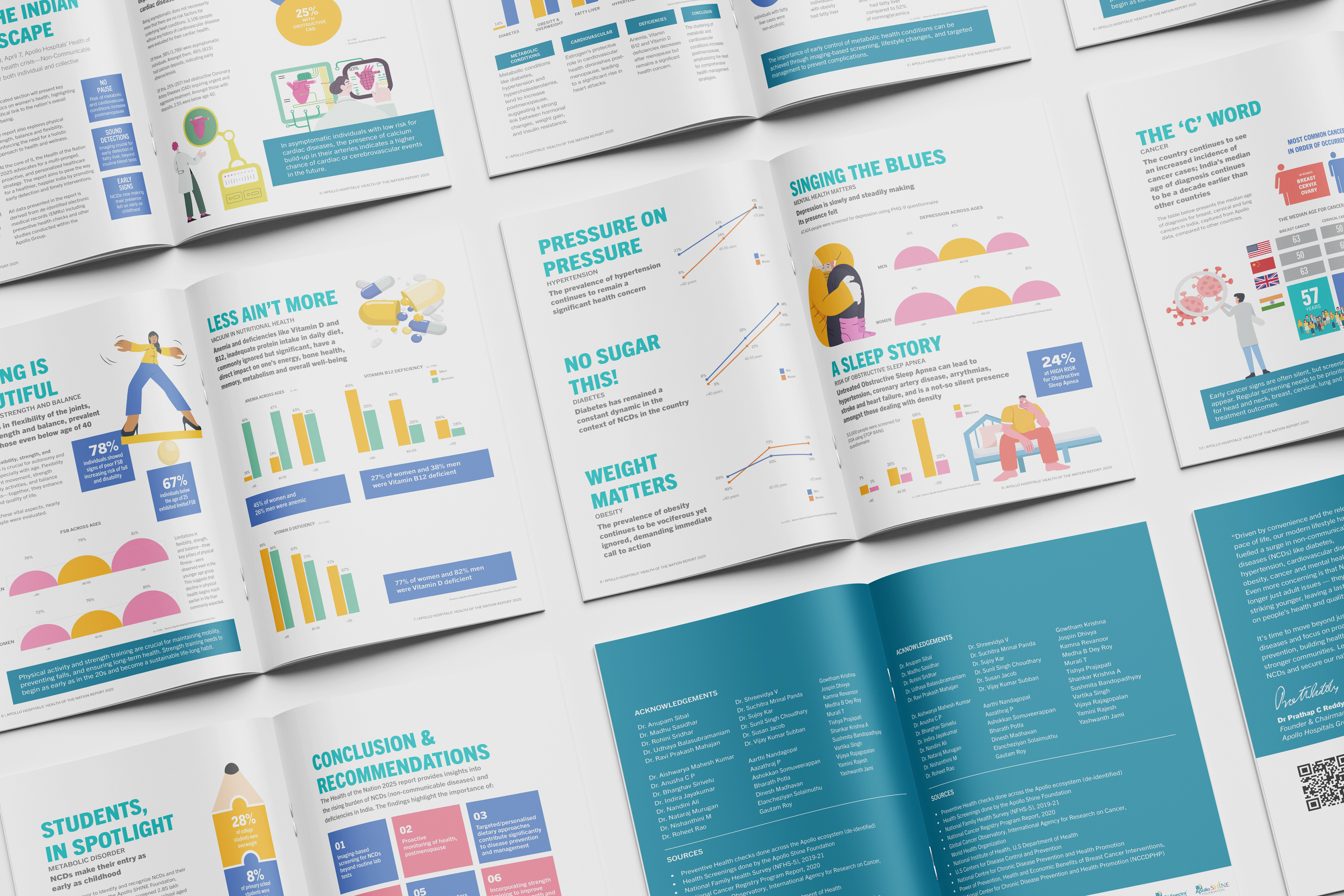 For the third consecutive year, we have had the opportunity to distill information from Apollo Hospitals Preventative Healthcare data to visualise their annual Health of the Nation report that sheds light on the growing health crisis——Non-Communicable Diseases (NCDs)—and the urgent need for both individual and collective action to combat them.