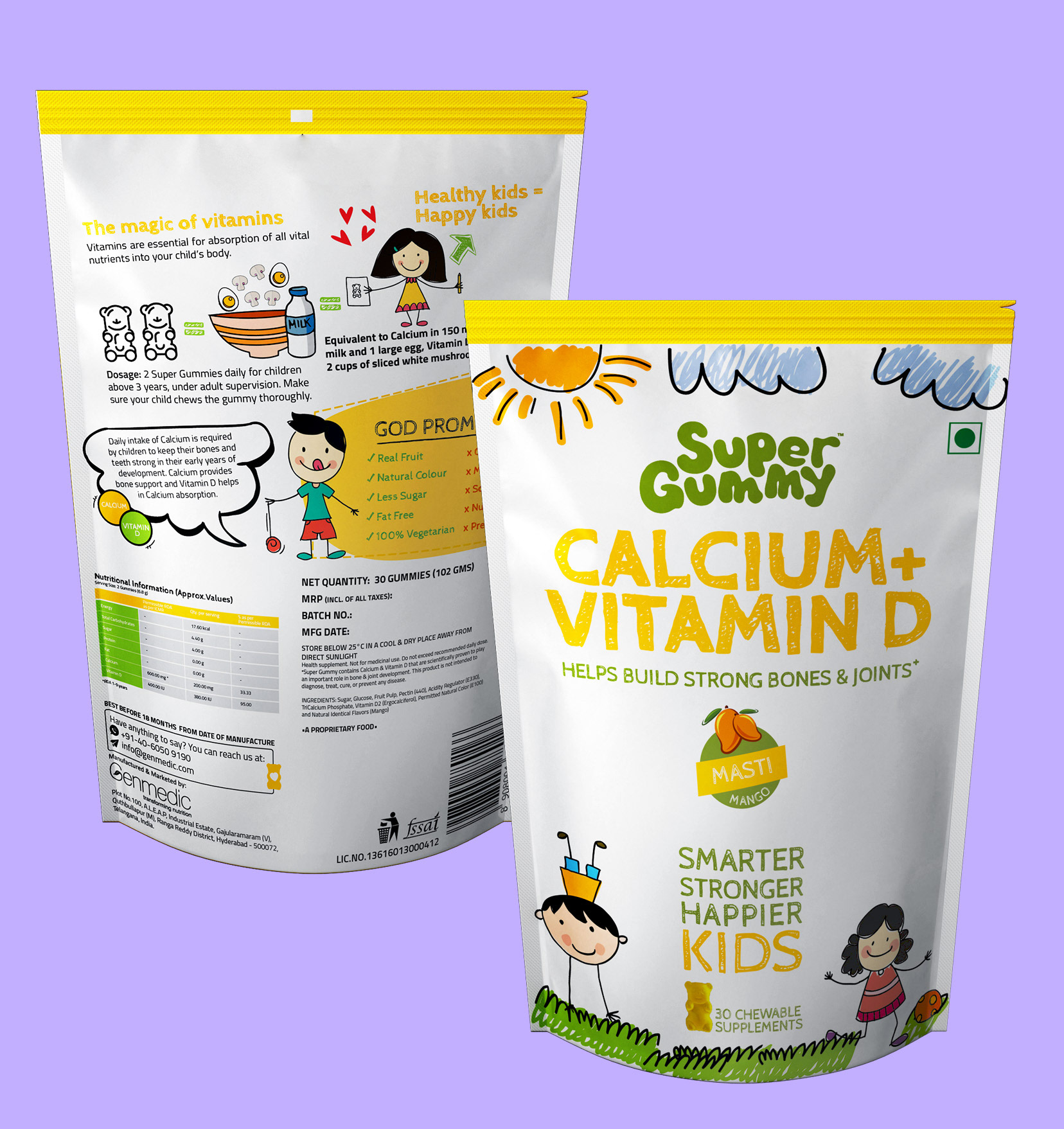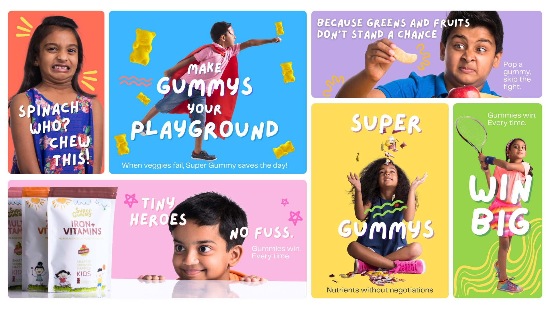 We brought the yummy and nutritious Super Gummy to life — a fun, flavour-packed daily multivitamin designed especially for kids. The three-year project gave us the opportunity to create a vibrant, kid-friendly brand world that parents trust and children love.