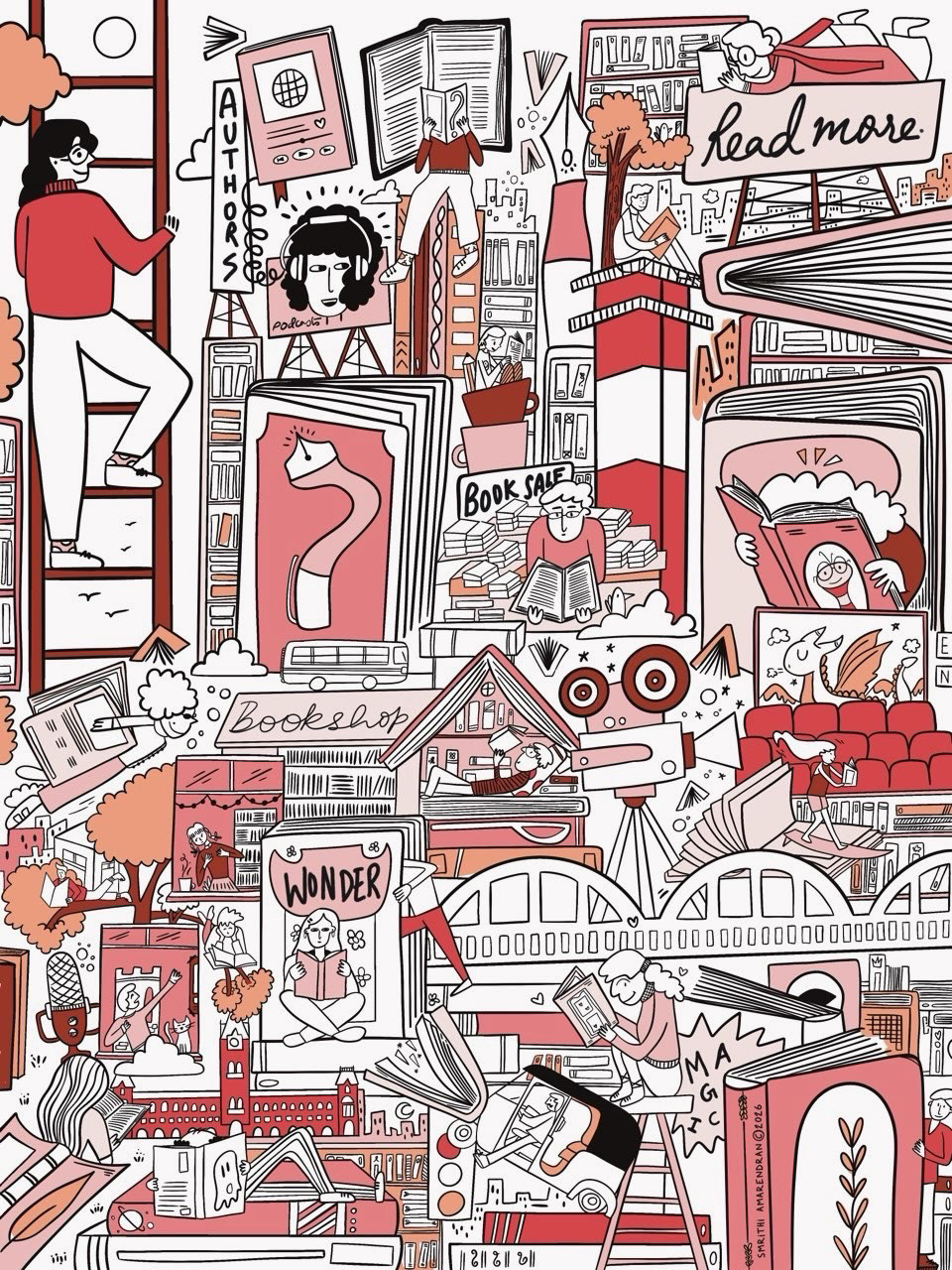 Taking off from the campaign ‘Love Every Bit of Lit’, we have designed a visual celebration of the countless ways stories shape our lives. As literature is no longer confined to the pages of books — it thrives in films, podcasts, audiobooks, social media, and the everyday narratives we witness around us. This concept embraces that evolution of storytelling and honors how people immerse themselves in narratives, wherever they find them.