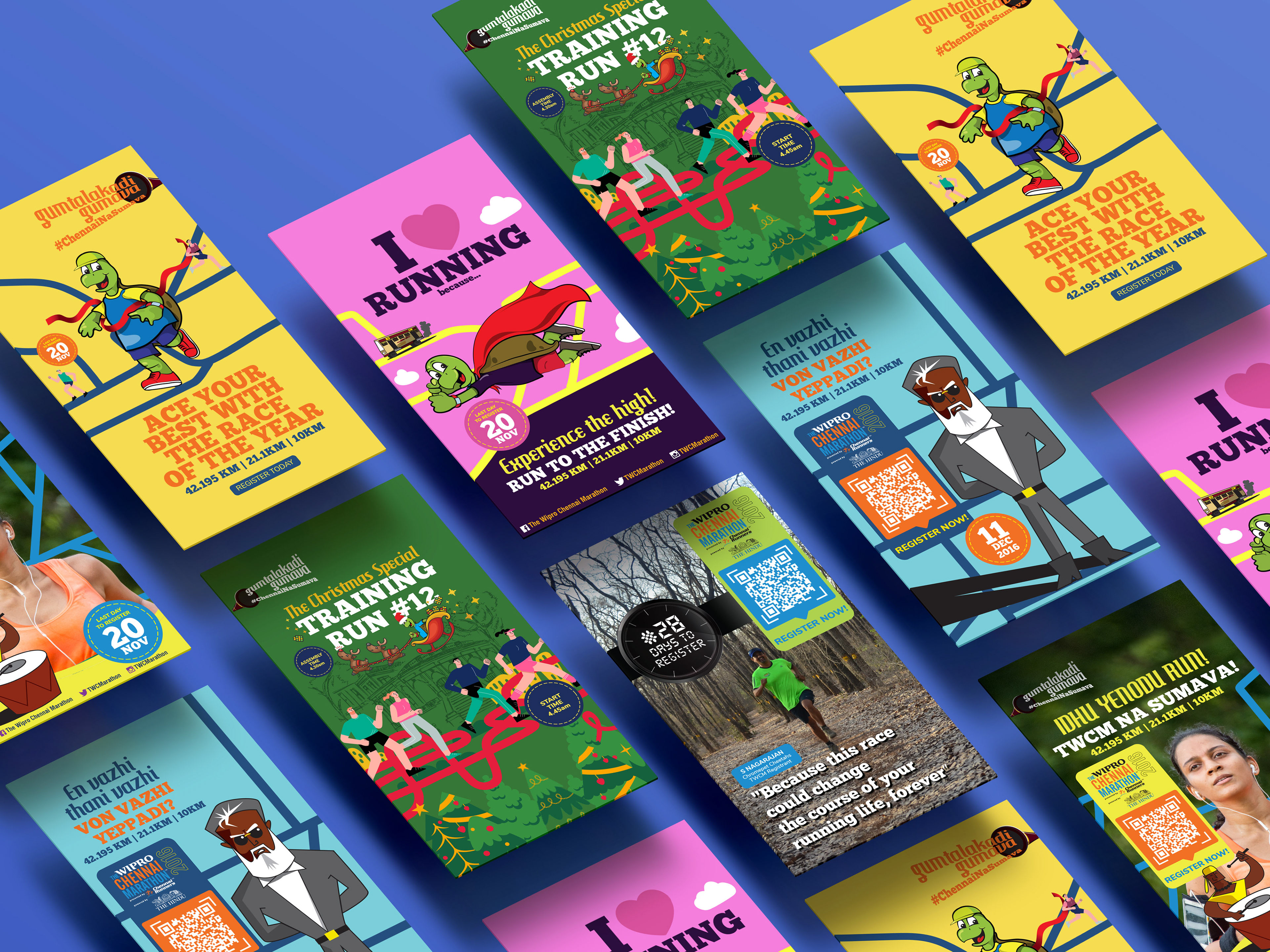 We created 500+ collaterals across every medium for the race—from June 2015 through race day in January 2016. Online, offline, on-ground, expo days, and special events like the Freedom Run, Girls’ Run, and Phoenix Mall Run—we handled it all. It was a milestone project that shaped us in the earliest days of our company.