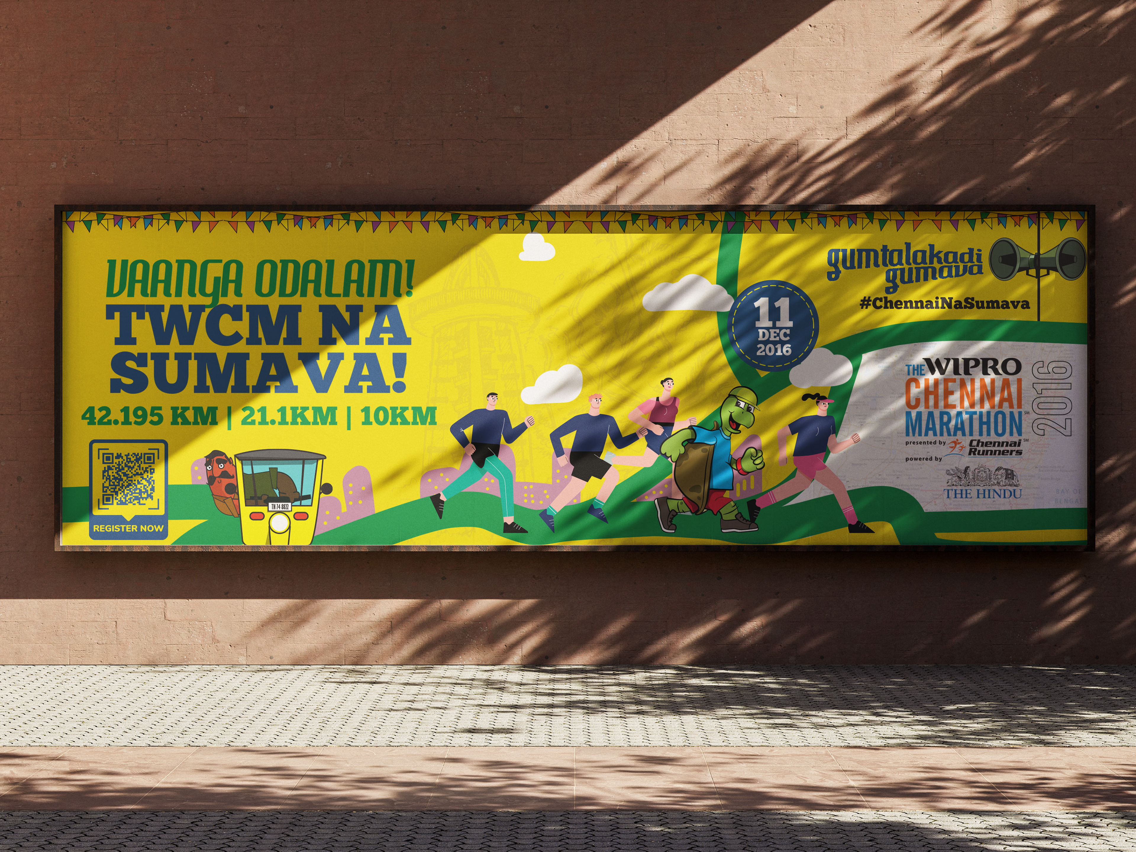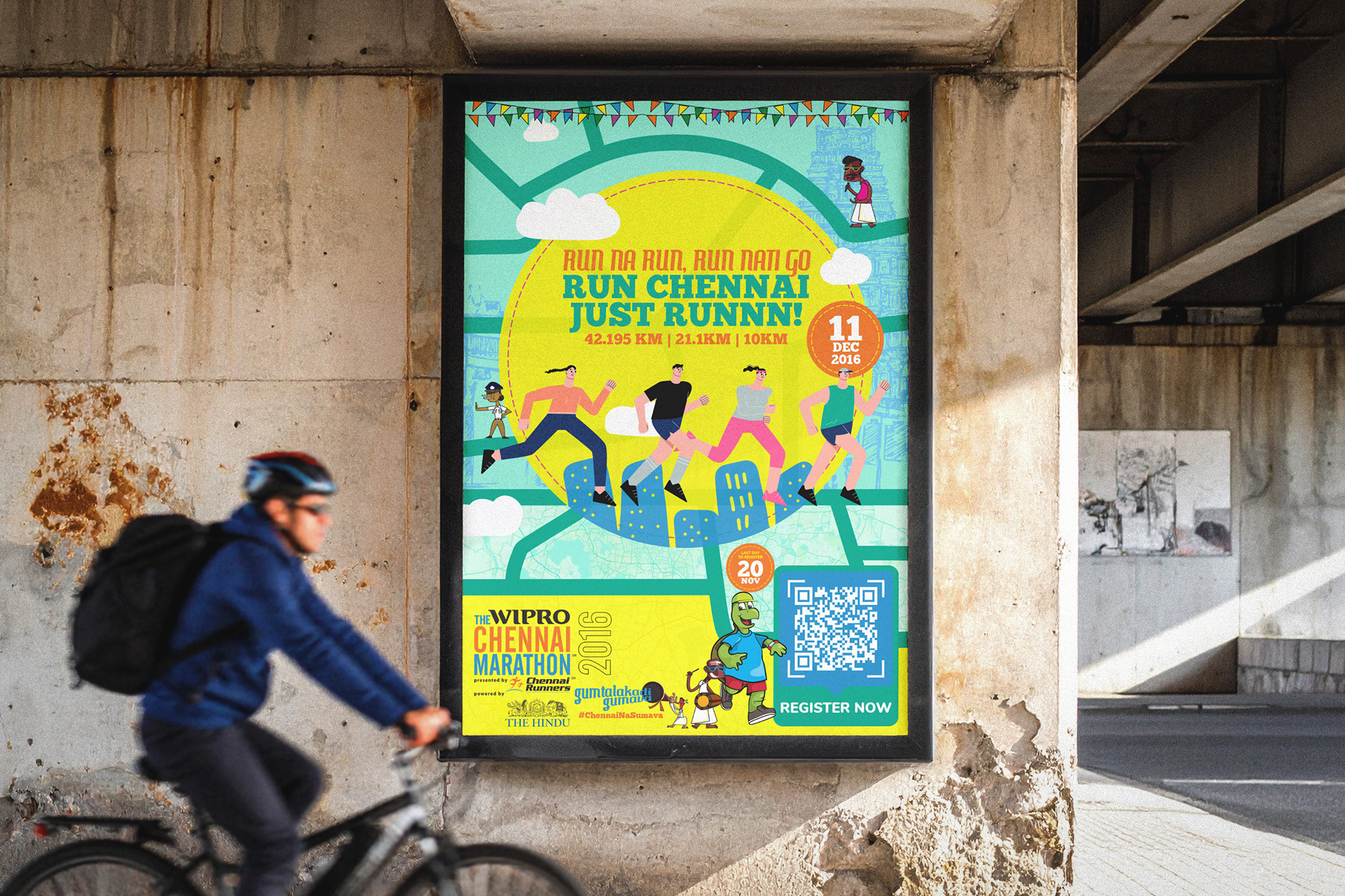 The Chennai Runners mascot, provided by the client gave us a lot of inspiration in terms of mood and colour