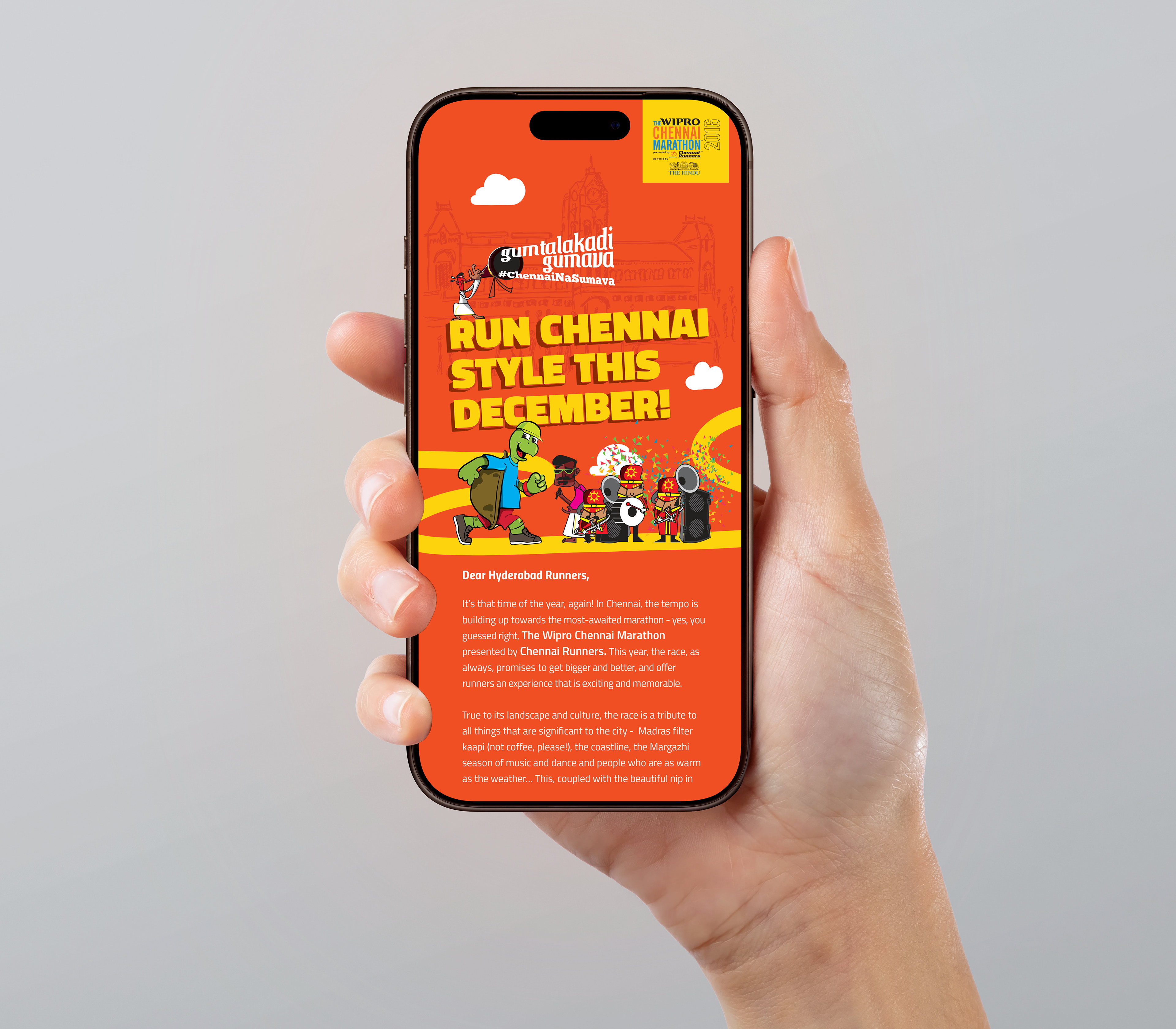 December in Chennai is a vibe. It’s when the city comes alive with music, monsoons—and of course, the marathon. Chennai’s running culture is legendary—stretching from Adyar to Anna Nagar—powered by grit, passion, and a touch of glorious madness. So for our campaign, we knew we needed more than a message. We needed a war cry.
