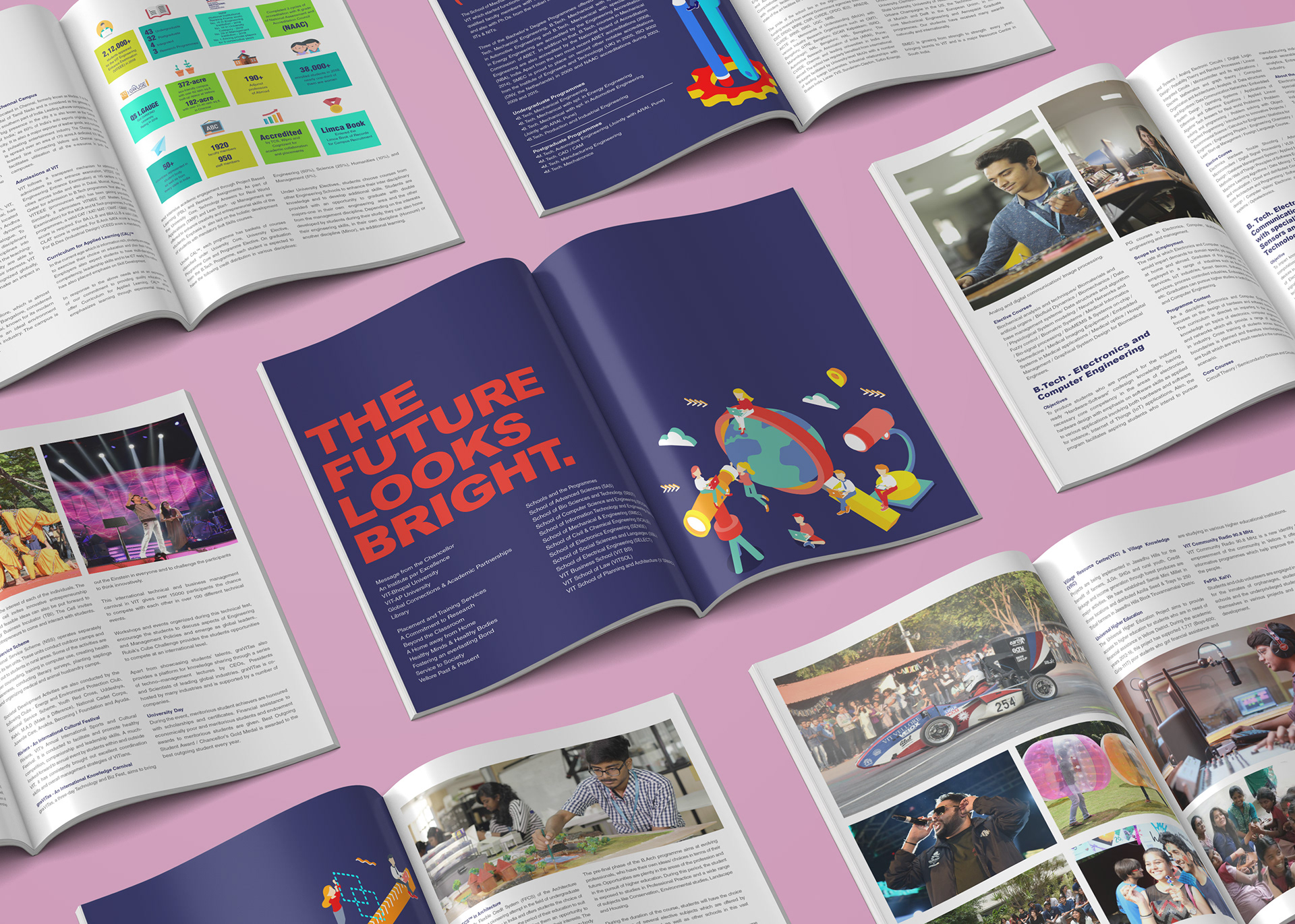 In addition to large-scale campaigns, we created VIT’s annual brochures and departmental materials, ensuring a cohesive brand identity across all campuses. Each brochure was designed to communicate the unique strengths of individual departments while maintaining a unified institutional voice.