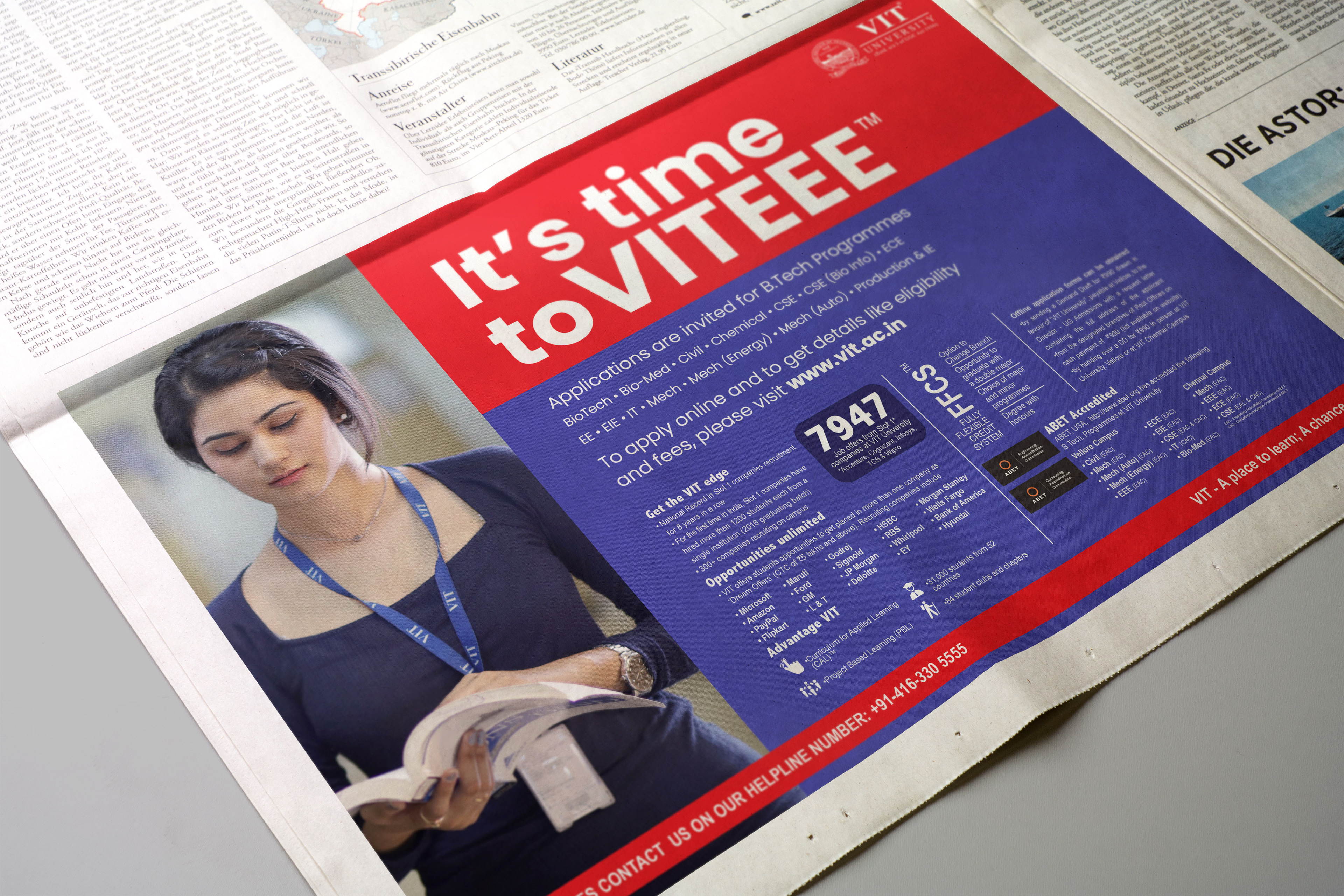 We also created the campaign 'It’s time to VITEEE' for their annual entrance exam, driving significant engagement through print and on-ground channels.